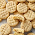 These addicting mini sugar cookies feature a soft and tender texture thanks to a unique combination of butter and oil in the dough. Rolled in sugar and cleverly stamped or flattened before baking, these bite-sized treats are perfect for cookie swaps, parties, or anytime you crave a classic sweet bite.
