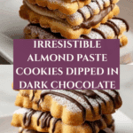 Delightfully tender and buttery almond paste cookies shaped into crescents, topped with sliced almonds and dipped in rich dark chocolate. These cookies are perfect for festive occasions or a special treat, offering a perfect balance of nutty almond flavor and decadent chocolate.