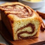 Pour and sprinkle the batter and cinnamon mixture in layers, then gently swirl with a knife without overmixing. This helps keep the swirl evenly distributed throughout the bread.