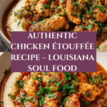 Authentic Chicken Étouffée is a soulful Louisiana classic featuring tender chicken simmered in a rich, deeply browned roux-based sauce with the traditional Cajun ‘holy trinity’ of onion, bell pepper, and celery. This hearty dish is perfect served over steaming white rice and offers a flavorful, spicy taste of New Orleans cuisine.