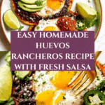 Keywords: Huevos Rancheros, Mexican breakfast, black beans, corn tortillas, salsa, eggs, brunch recipe, easy Mexican