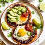 Yes! Skip the eggs and top the tortillas with extra beans, sautéed vegetables, and avocado. You can also use tofu scramble as an egg substitute.