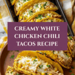 Keywords: white chicken chili tacos, creamy chicken tacos, easy chicken chili recipe, corn tortilla tacos