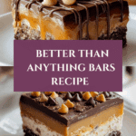 Better Than Anything Bars combine a rich chocolate base with layers of creamy condensed milk, gooey caramel, crunchy toffee, and fluffy whipped topping. This dessert is indulgent, texturally interesting, and perfect for satisfying sweet cravings.