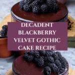 Blackberry Velvet Gothic Cake is a dark, lush dessert featuring moist cocoa layers filled with a tart blackberry compote, topped with light whipped cream and elegant garnishes like fresh berries and chocolate shavings. This cake blends deep chocolate intensity with tangy fruitiness for a strikingly beautiful and decadent treat.