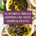 This flavorful bread dipping oil is a perfect appetizer or snack that brings Mediterranean vibes to your table. It combines fresh herbs, olives, garlic, and parmesan for a savory dip that pairs beautifully with warm crusty bread.