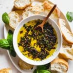 This flavorful bread dipping oil is a perfect appetizer or snack that brings Mediterranean vibes to your table. It combines fresh herbs, olives, garlic, and parmesan for a savory dip that pairs beautifully with warm crusty bread.