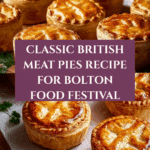 These delicious British meat pies are a classic comfort food, perfect for sharing at gatherings like the Bolton Food Festival. Crispy golden pastry filled with savory, seasoned beef makes each bite utterly satisfying and hearty.