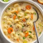 Keywords: cheeseburger soup, macaroni soup, ground beef soup, creamy soup, American comfort food, cheddar soup, easy soup recipe