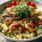 This Chicken Scampi with Garlic Parmesan Rice is a flavorful and comforting dish featuring tender sautéed chicken strips tossed in a garlicky lemon butter sauce, served over creamy, cheesy garlic-infused rice. Perfect for a quick weeknight dinner, it combines simple ingredients like fresh garlic, Parmesan cheese, and herbs to create a restaurant-quality meal at home.