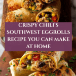 Recreate Chili’s iconic Southwest Eggrolls at home with this easy and flavorful recipe. Crispy golden eggroll wrappers encase a smoky, cheesy filling of sautéed bell peppers, red onion, black beans, corn, shredded chicken, and a blend of Monterey Jack and pepper jack cheeses. Served with a tangy Southwest Ranch dipping sauce, these eggrolls offer a perfect balance of textures and bold Southwestern flavors, ideal as a party appetizer or satisfying snack.