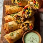 Recreate Chili’s iconic Southwest Eggrolls at home with this easy and flavorful recipe. Crispy golden eggroll wrappers encase a smoky, cheesy filling of sautéed bell peppers, red onion, black beans, corn, shredded chicken, and a blend of Monterey Jack and pepper jack cheeses. Served with a tangy Southwest Ranch dipping sauce, these eggrolls offer a perfect balance of textures and bold Southwestern flavors, ideal as a party appetizer or satisfying snack.