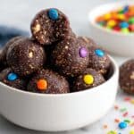 These Cosmic Brownie Bites are a healthy, gluten-free treat that combines the natural sweetness of medjool dates with crunchy almonds and walnuts, rich cocoa powder, and a hint of vanilla. Enhanced with candy-coated chocolate chips for a fun twist, these no-bake bites are perfect for a guilt-free snack or dessert.