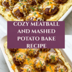 Keywords: meatball bake, mashed potato casserole, comfort food, easy dinner, baked meatballs, cozy meals
