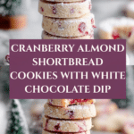 Keywords: Cranberry Almond Shortbread Cookies, white chocolate dipped cookies, holiday cookies, almond extract cookies, shortbread recipe