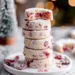 Cranberry Almond Shortbread Cookies are a delightful treat combining rich buttery dough with tart cranberries and a hint of almond flavor. Finished with a smooth white chocolate coating, these cookies are perfect for festive occasions or an everyday indulgence.