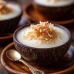 Creamy Brazilian Coconut Pudding, known as ‘Cocada Cremosa,’ is a luscious, rich dessert made with sweetened condensed milk, fresh coconut, and creamy coconut milk. This traditional treat is cooked slowly on the stovetop until thick and velvety, then cooled to a perfect, firm consistency. Ideal for coconut lovers seeking a tropical, indulgent sweet treat.