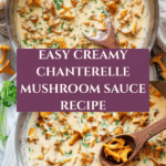 Store leftover chanterelle sauce in an airtight container in the refrigerator for up to 3 days. Reheat gently on the stove over low heat, stirring frequently to prevent the cream from separating. If the sauce thickens too much after refrigeration, stir in a splash of broth or cream while reheating to restore the desired consistency.