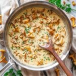 Store leftover chanterelle sauce in an airtight container in the refrigerator for up to 3 days. Reheat gently on the stove over low heat, stirring frequently to prevent the cream from separating. If the sauce thickens too much after refrigeration, stir in a splash of broth or cream while reheating to restore the desired consistency.