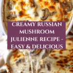 Creamy Russian Mushroom Julienne is a rich and comforting baked mushroom dish, perfect as an appetizer or side. With tender baby bella mushrooms drenched in a luscious sour cream and cheese sauce, it’s a simple yet elegant treat for mushroom lovers.
