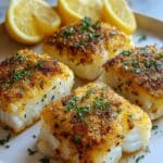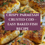 Crispy Parmesan Crusted Cod is a delicious and easy-to-make dish featuring tender cod fillets coated with a flavorful mix of panko breadcrumbs, Parmesan cheese, and spices, then baked to golden perfection. This recipe delivers a crunchy crust and moist, flaky fish, perfect for a healthy weeknight dinner or a special occasion.