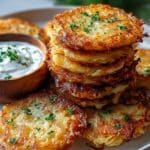 These fritters pair well with cool dips like sour cream, Greek yogurt, avocado dip, or a simple lemon aioli. A fresh salad also complements the dish nicely.