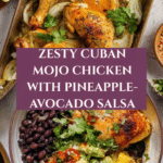 Cuban Mojo Chicken is a vibrant and zesty oven-baked dish featuring bone-in, skin-on chicken leg quarters marinated in a citrusy mojo sauce with garlic, cilantro, cumin, and oregano. Paired with a fresh pineapple-avocado salsa, this recipe offers an authentic Cuban flavor perfect for a flavorful and satisfying main course.