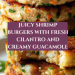 These Delicious Shrimp Burgers combine tender, coarsely chopped shrimp patties infused with fresh cilantro and spices, perfectly grilled to a golden brown. Topped with creamy, zesty guacamole made from ripe avocados, red onion, and jalapeño, these burgers offer a refreshing and flavorful meal ideal for grilling season or any time you crave a fresh and satisfying sandwich.