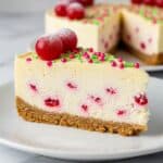 Keywords: sugar cookie cheesecake, edible cookie dough cheesecake, white chocolate ganache cheesecake, creamy cheesecake recipe, dessert recipe