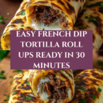 These French Dip Tortilla Roll Ups are a delightful twist on the classic sandwich, combining tender roast beef and melted cheese wrapped in a soft flour tortilla. Ready in just 30 minutes, they are perfect for a quick lunch or casual gathering with a flavorful au jus for dipping.