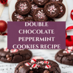 Keywords: double chocolate peppermint cookies, peppermint cookies, holiday cookies, chocolate peppermint dessert, festive cookies