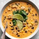 Keywords: chicken poblano soup, black bean soup, creamy chicken soup, Mexican chicken soup, easy chicken soup recipe, small batch soup