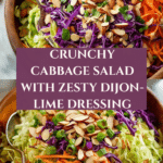 Keywords: cabbage salad, crunchy salad, Dijon lime dressing, healthy salad, easy salad recipe, vegetarian salad, quick side dish, summer salad