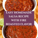 Keywords: homemade salsa, easy salsa recipe, fire roasted salsa, blender salsa, fresh salsa, Mexican salsa, tortilla chips, spicy salsa