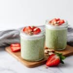 7. Serve and Garnish: Once set, top with a dollop of coconut yogurt, fresh berries such as sliced strawberries, and slivered almonds if desired. Enjoy your nutritious and delicious matcha chia pudding chilled!