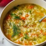Keywords: orzo soup, leek soup, dill soup, vegetarian soup, easy soup recipe, Mediterranean soup, healthy soup