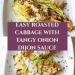This Easy Roasted Cabbage recipe features tender, caramelized cabbage wedges served with a rich and tangy Onion Dijon Sauce. Perfectly roasted to develop crispy browned edges, the cabbage pairs beautifully with a buttery mustard sauce accented by fresh onion and garlic. A simple, flavorful side dish that elevates humble cabbage with minimal ingredients and fuss.
