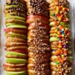 This easy sheet pan caramel apples recipe is perfect for serving a crowd without the fuss of individual treats. Crisp apple slices are coated in a rich, homemade caramel and topped with your favorite crunchy or sweet toppings. It’s a simple, fun dessert that’s ready in under an hour.
