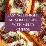 This Easy Weeknight Meatball Sub recipe features tender, perfectly seasoned meatballs simmered in a rich marinara sauce, nestled inside toasted hoagie rolls and topped with melted provolone and mozzarella cheeses. It’s a comforting, flavorful sandwich that’s quick enough for a weeknight but special enough to satisfy any craving for classic Italian-American comfort food.