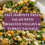 Keywords: Fall harvest pasta salad, butternut squash pasta salad, turkey sausage salad, roasted vegetable pasta salad, autumn salad recipe