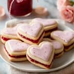 These Filled Heart-Shaped Strawberry Shortbread Cookies are tender, buttery treats with a luscious strawberry jam filling and a smooth strawberry glaze. Perfect for special occasions or everyday indulgence, these cookies combine classic shortbread texture with fruity sweetness and a beautiful pink glaze finish.