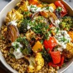 This Garlic Roasted Veggie Grain Bowl is a nutrient-packed, wholesome meal combining tender roasted vegetables, fluffy quinoa, and a creamy lemon tahini dressing. Perfect for a healthy lunch or dinner, it offers a delightful balance of sweet, savory, and tangy flavors with vibrant colors and satisfying textures.