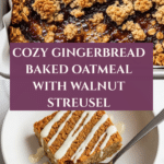 Keywords: gingerbread baked oatmeal, walnut streusel, vegan breakfast, baked oats, healthy breakfast, holiday oatmeal, gingerbread spices