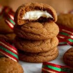 These Gingerbread Cheesecake Cookies combine the warm spices of gingerbread with a creamy cheesecake center for a festive and delicious holiday treat. Soft, spiced cookie dough envelopes a sweet and tangy cheesecake filling, creating a delightful contrast in every bite.