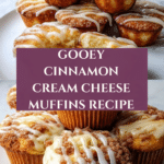 These Gooey Cinnamon Cream Cheese Muffins are irresistibly soft and bursting with warm cinnamon flavor and a creamy center. Perfect for breakfast or an indulgent snack, they combine fluffy muffin texture with a luscious cream cheese filling that melts in your mouth.