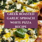This Greek Roasted Garlic Spinach White Pizza is a flavorful and wholesome twist on traditional pizza. Featuring a perfectly roasted head of garlic, sautéed fresh spinach, and a blend of ricotta, mozzarella, feta, and Parmesan cheeses, this pizza delivers rich Mediterranean flavors balanced by aromatic herbs and a crispy golden crust. It’s an ideal choice for a savory vegetarian meal that’s both comforting and elegant.