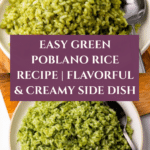 Keywords: Green Poblano Rice, Mexican Rice, Poblano Pepper Rice, Side Dish, Easy Rice Recipe