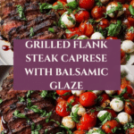 This Grilled Flank Steak Caprese with Balsamic Dressing is a perfect blend of smoky, savory grilled flank steak paired with a fresh, vibrant Caprese salad of cherry tomatoes, mozzarella, and basil. Finished with a sweet tangy balsamic glaze, this dish offers a delicious Italian-inspired meal ideal for warm weather grilling or a stylish dinner.