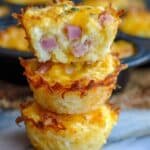 Keywords: breakfast muffins, hash brown muffins, ham egg cheese muffins, easy breakfast, make ahead breakfast