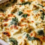 This High-Protein Spinach and Artichoke Chicken Casserole is a delicious and hearty meal perfect for a nutritious dinner. Combining tender shredded chicken, fresh spinach, artichoke hearts, and creamy Greek yogurt with mozzarella and Parmesan cheeses, it offers a flavorful, comforting dish that’s both satisfying and rich in protein. Topped with optional breadcrumbs for a delightful crunch, this casserole is baked to golden perfection, making it an ultimate wholesome meal for the whole family.